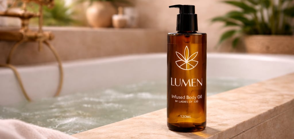 At Ladies of 420, we encourage the use of cannabis-infused body care because it honors both heritage and intention. We believe skincare should be simple, grounding, and effective—something that fits naturally into daily rituals. With continued use, LUMEN Body Oil leaves skin feeling smoother, more nourished, and visibly radiant, transforming routine self-care into a moment of relaxation and connection.